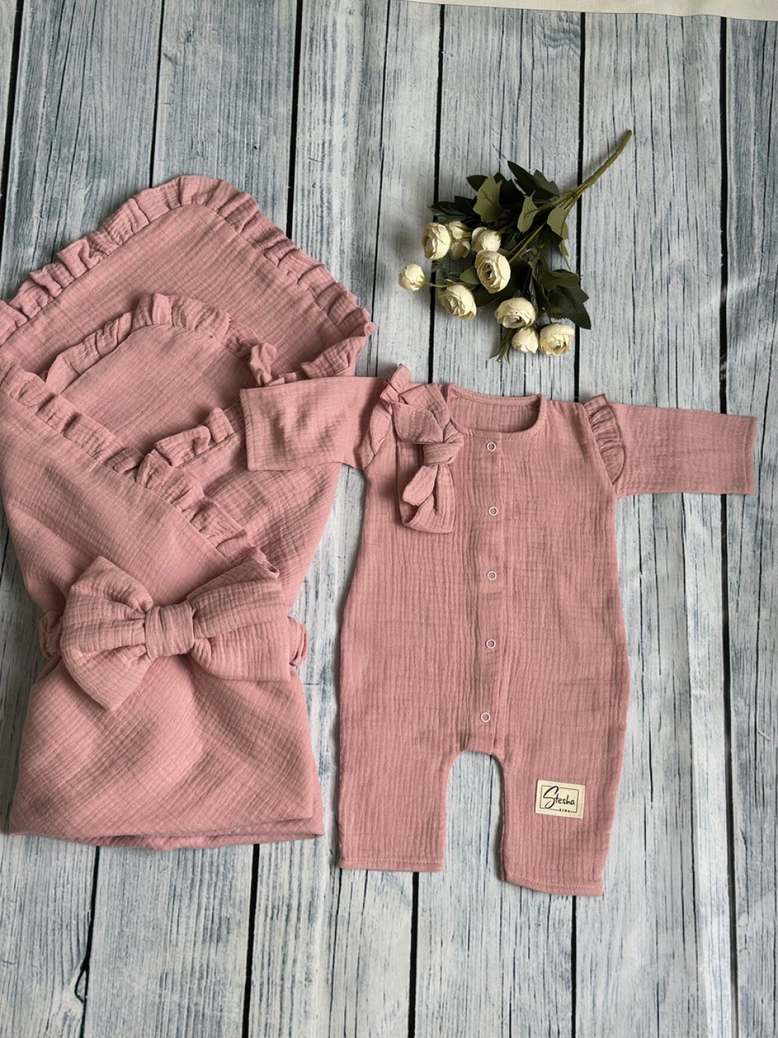 Теги: Купить детские конверты, комбинезон оптом, детские конверты на выписку оптом. 335-П. Комплект из детского комбинезона, р 56 и конверта муслин, хлопок 100% 90/90 см, пудра цена,отзывы официальный сайт "Стеша Пятигорск"